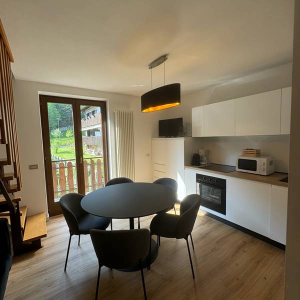 Approximately 60 m² apartment arranged over two floors, ideal for up to 5 people, located on the first floor. Completely renovated in winter 2025, the apartment features a warm and modern design to offer maximum comfort in a cozy atmosphere. First level: entrance hall, living room with fully equipped kitchenette (induction hob, oven, dishwasher, coffee machine, kettle), comfortable sofa, satellite TV, and Wi-Fi. Bathroom with shower, hairdryer, and washing machine. All apartments have a furnished balcony; only some offer a lake view. Second level (attic): one double bedroom and one bedroom with three single beds. Shared amenities: bicycle storage (with a few bicycles available free of charge), garden, barbecue, small playground, and outdoor pool (5 x 10 m), open from May to September, with sun loungers. Private parking included.